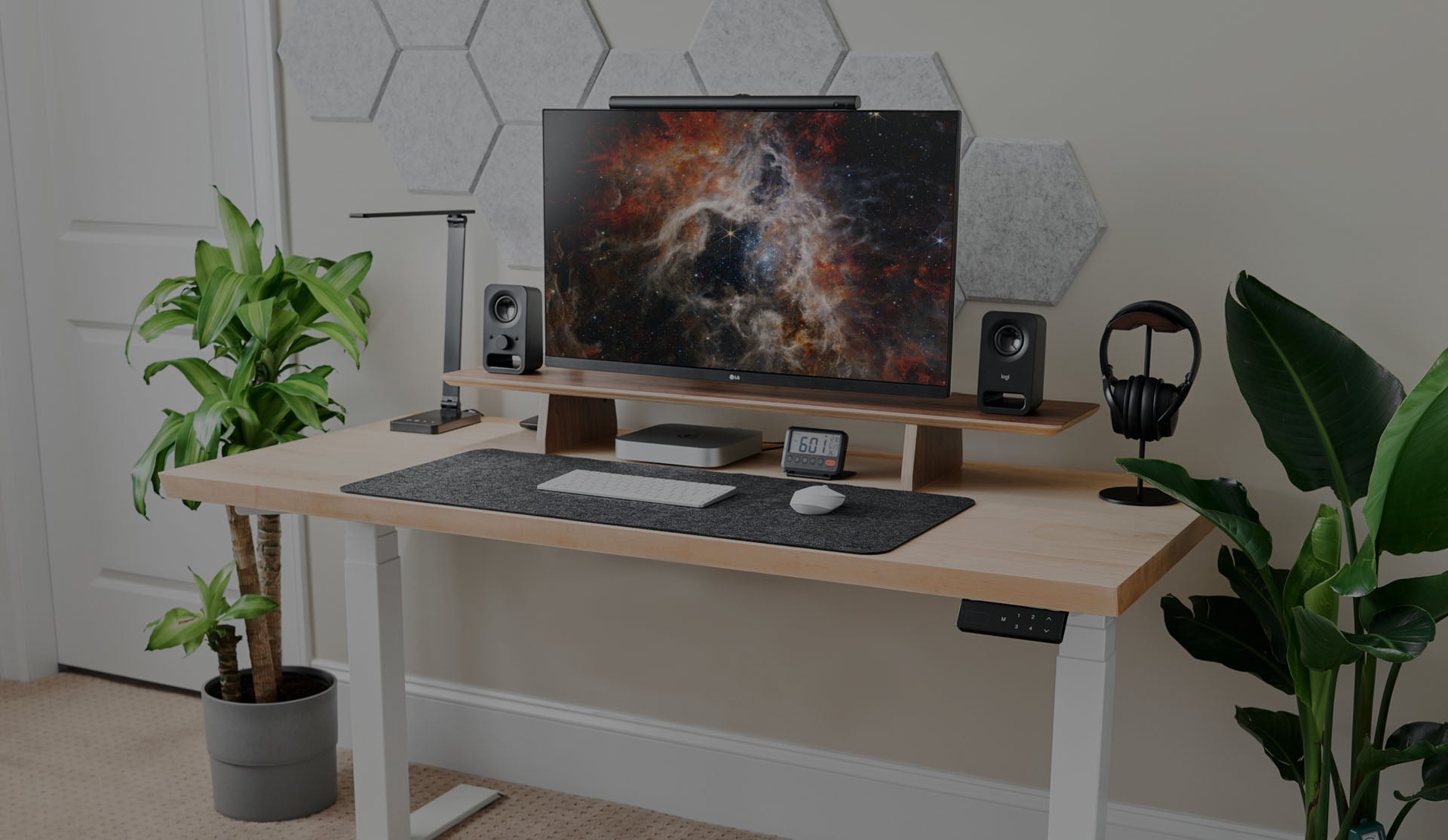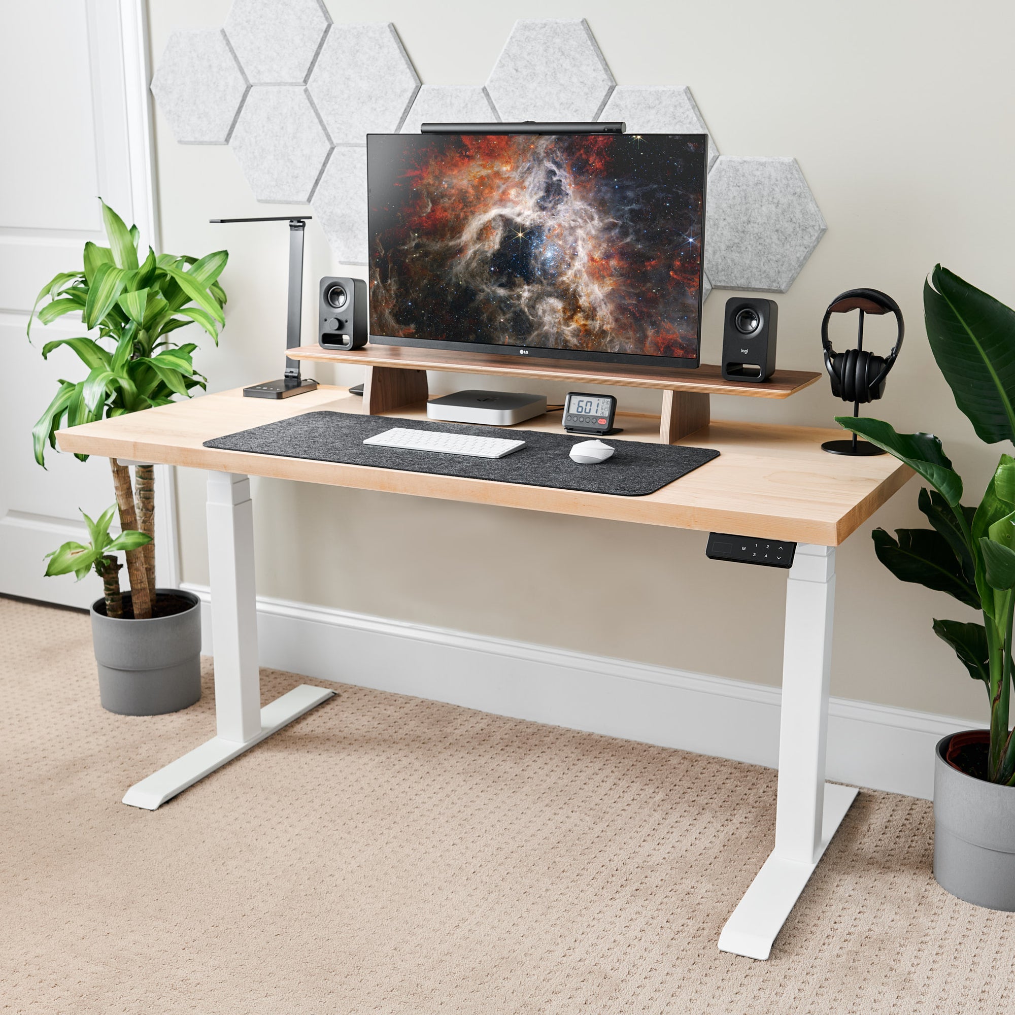 Transform your workspace with our handcrafted solid wood desks, available in premium pacific maple and usa black walnut with minimal knots, paired with Frame One for unparalleled design and smooth operation.